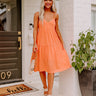 Make a grand entrance in our adorable orange 'Lucky Day' dress featuring lightweight material, a wide v-cut neckline, four spaghetti straps that tie in the back, hidden side pockets, and a relaxed tiered babydoll silhouette that falls into a straight mid-calf length hemline!