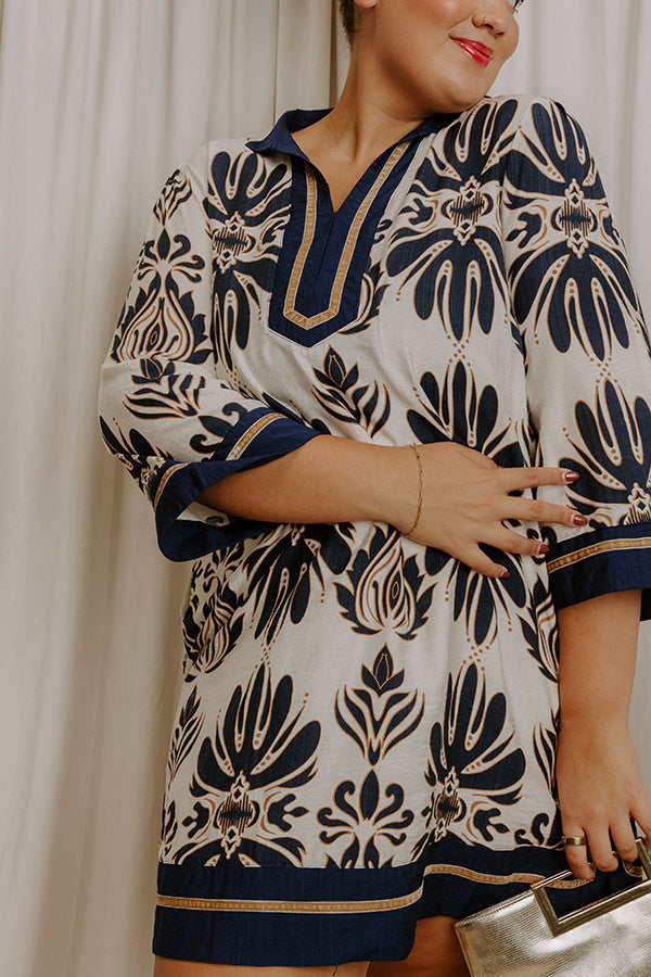 - Get an effortless polished look with this chic mini dress! With its eye-catching print and relaxed fit, it's the perfect piece for turning any casual day into a stylish moment.