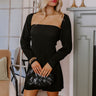- A figure flattering silhouette that ends in a straight mini dress length hemline