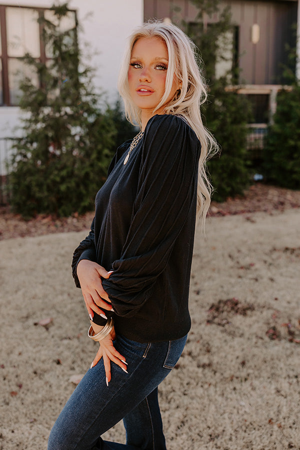 Elevate your casual style with our darling black 'Act Out Of Love Top' featuring lightweight material, a rounded neckline, long pleated sleeves with fitted cuffs, and a slouched silhouette that falls into a straight hemline!
