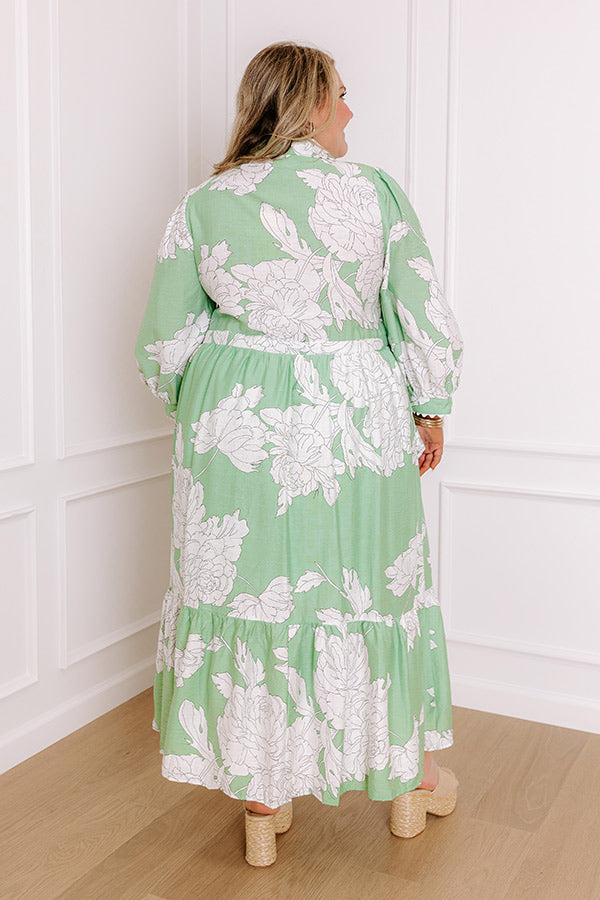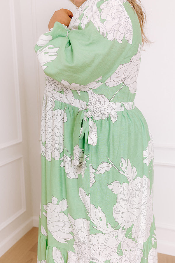 Bistro Bound Floral Midi Dress in Seaglass Curves