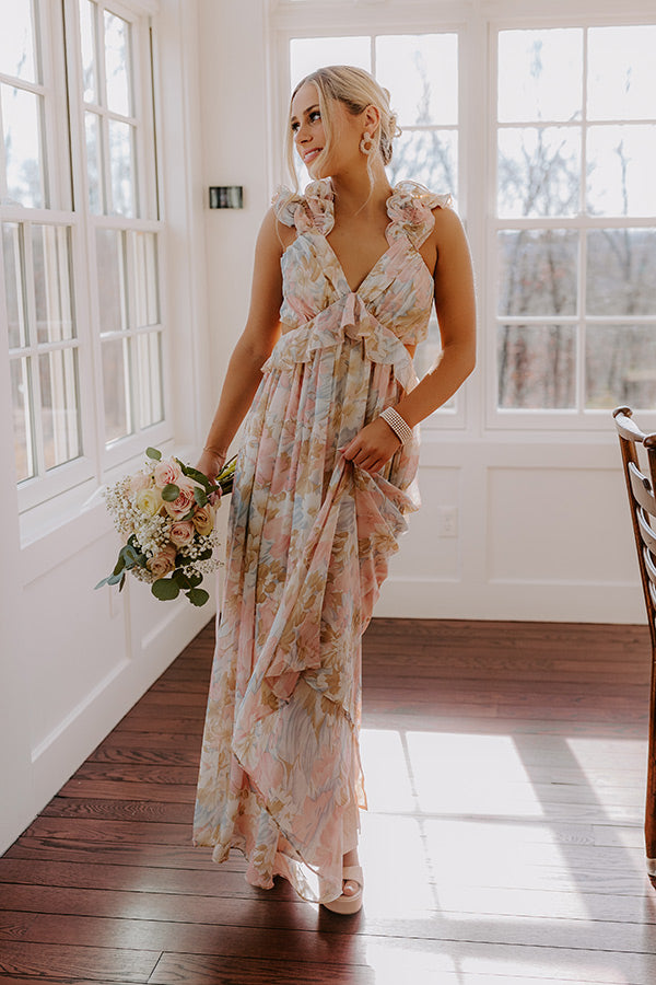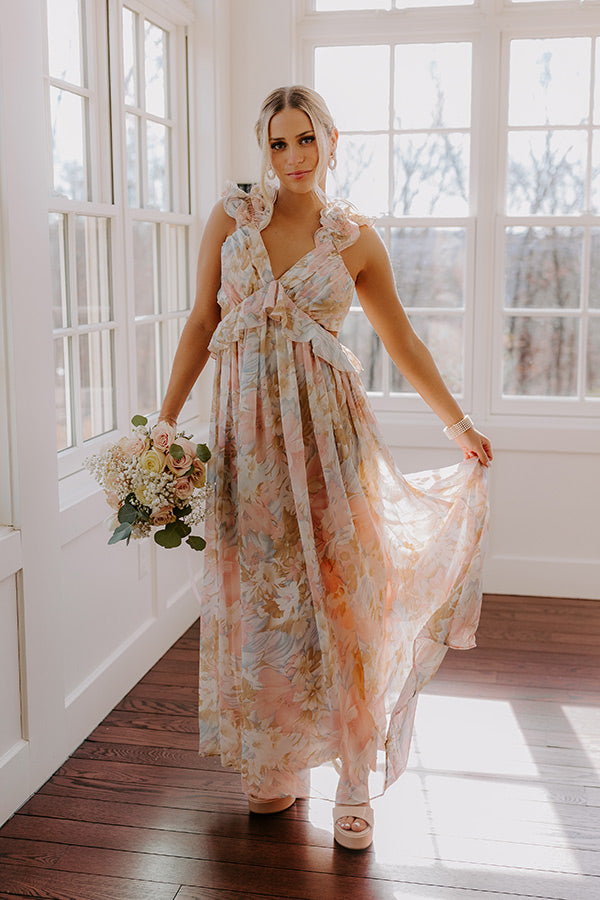 - Embrace the beauty of floral season with this darling maxi! Its flowy material and sweet ruffles make this enchanting piece perfect for everything from seasonal photoshoots to head-turning date night looks.