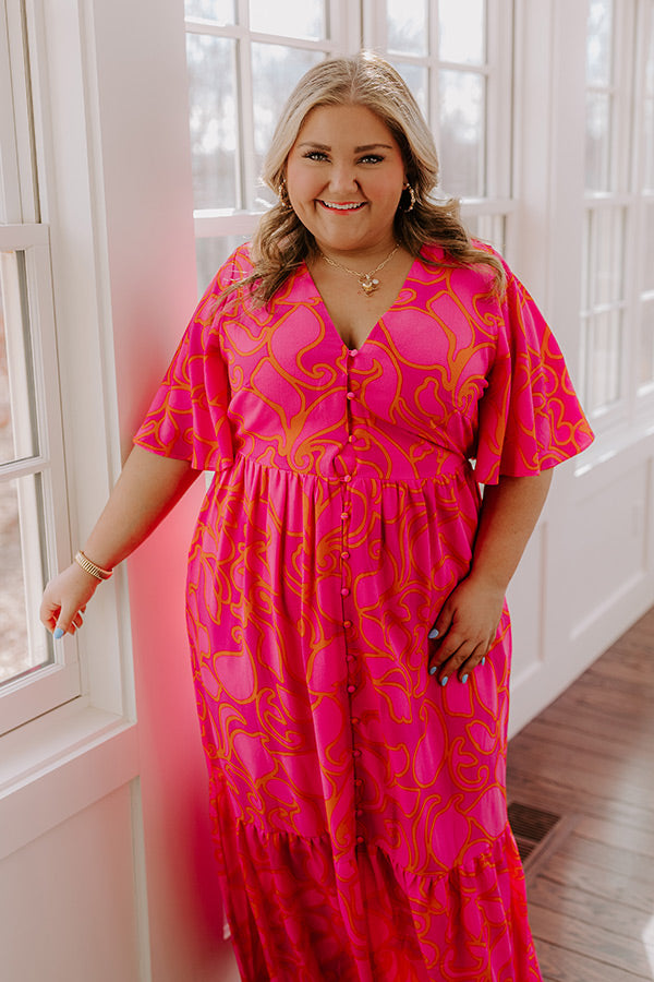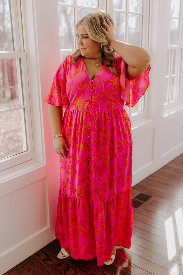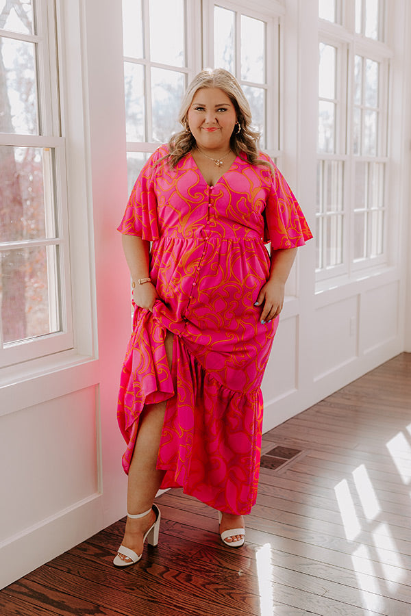 Sailboat Soiree Floral Maxi Dress in Hot Pink Curves