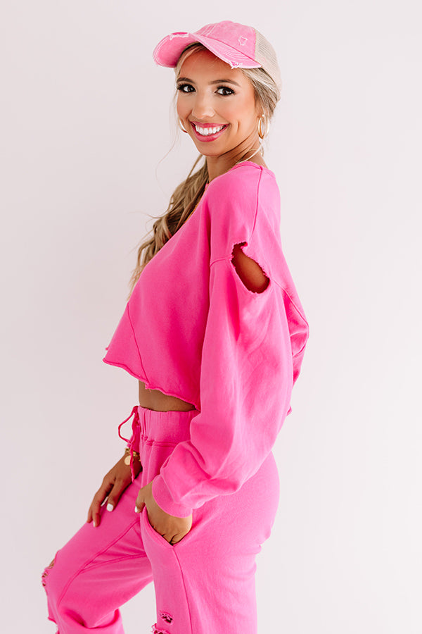 A Little Chilly Crop Sweatshirt In Pink