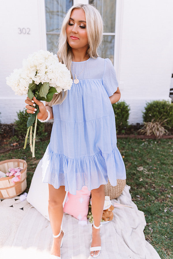 Dress to express in our darling airy blue "Aruba Kisses Shift Dress" featuring ultra lightweight breezy material, a high rounded neckline, short loose sleeves, a keyhole accented upper back with a button closure, and a relaxed tiered silhouette that falls into an uneven mid-thigh length hemline! We have styled this gorgeous piece with some woven platform heels and a blush headband and crossbody, but you can also wear it layered under a cropped denim jacket with "The Allen Wedge in Snake Print!" Measurements