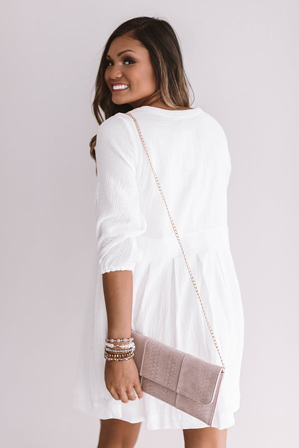 I think we can all agree that this is the perfect dress for wearing "beachside in Bali" with its v-cutout neckline, embroidered bodice, 3/4 length sleeves, and flared skirt! This adorable piece can be paired with a neutral wedge and clutch, or with our rose "Beverly Hills Hottie Heels" and "Italian Getaway Scarf in Mint" for a feminine vacation style! Measurements