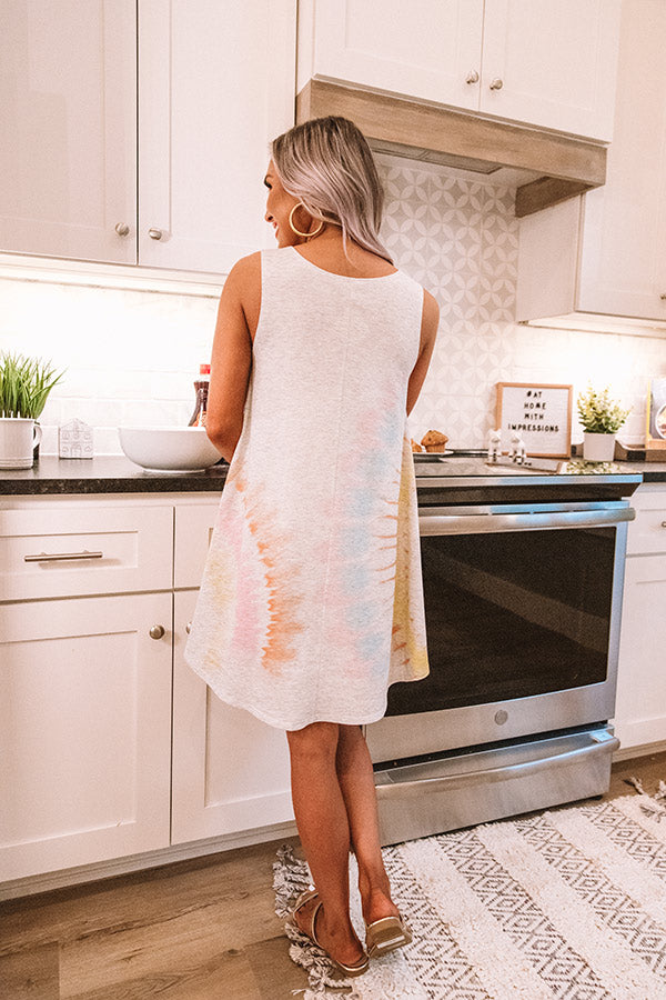You are sure to shine brighter than a "beam of light" when you wear this stunning neutral hued shift dress featuring lightweight breezy material patterned with subtle colorful tie dye, a high rounded neckline, wide 2-inch shoulder straps, and a relaxed silhouette that falls into a rounded mid-thigh length hemline! We have styled this cutie with some gold sandals and hoop earrings, but you can also wear it layered under a cropped jean jacket with "The Ansley Sneaker," pink sunnies, and a faux leather backpack! Measurements