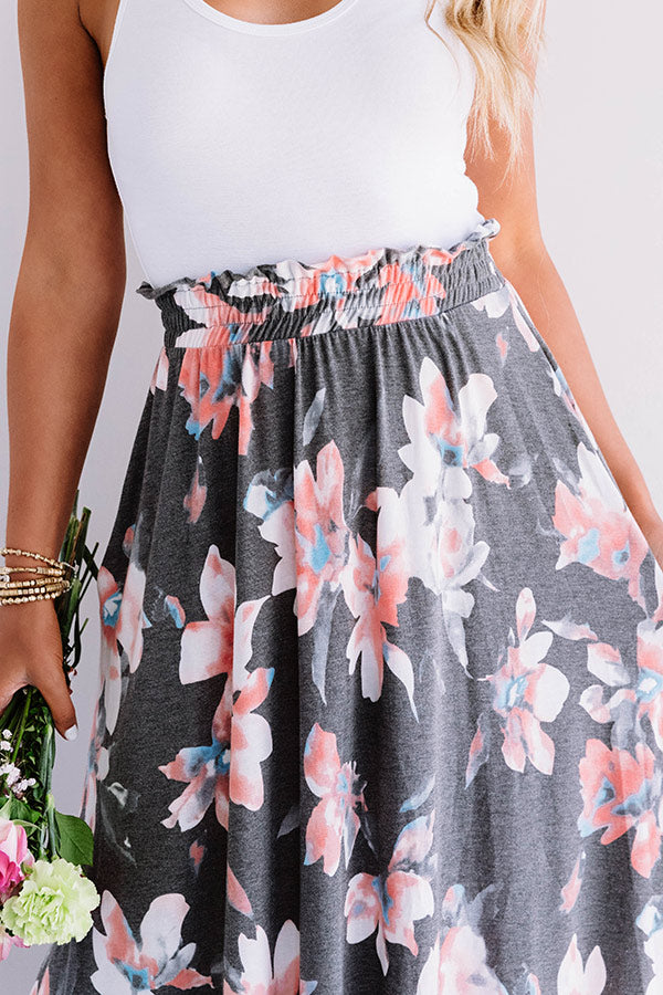 Your summer wardrobe is sure to blossom when you wear our adorable "Better In Blooms" top featuring soft lightweight material patterned with a bold coral and white/blue hued floral print, a wide elastic waistline with smocked detailing and ruffled accent trim, and an ultra relaxed silhouette that falls into a rounded floor-length hemline with side slits! We have styled this cutie with a basic white tank under a cropped jean jacket and a neutral wedge and clutch, but you can also wear it with our "Wander Along Waffle Knit Top in Coral," white sunnies, and 'The Melina Heel in White!" Measurements
