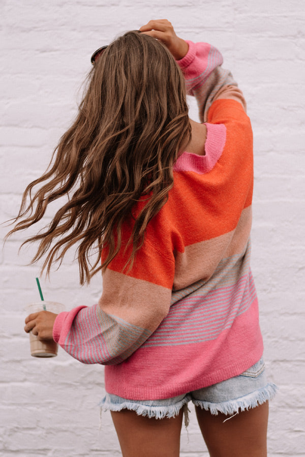 You are sure to be total "brunch goals" when you layer up with this adorable cardigan featuring soft lightweight tight knit material with vibrant red and pink horizontal accent stripes, a v-cut neckline, long oversized sleeves with fitted elastic banded cuffs, ribbed trim detailing, a straight hemline, and a relaxed button up silhouette that can be worn open or closed! You can wear this versatile piece with just about anything from a basic tank to a sweater, jeans to skirts or dresses, booties to wedges or sandals, clutches to totes, and hats to earrings!