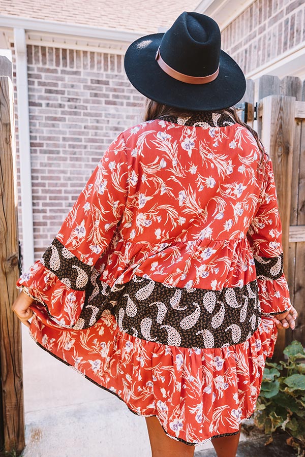 Plus Size - Welcome fall in style with our eye-catching "Cabernet Kisses" shift dress featuring lightweight material, red and black color block panels patterned with an intricate paisley print, a v-cut neckline, loose 3/4-length sleeves with oversized flare cuffs, and an ultra relaxed silhouette that falls into an uneven mid-thigh length hemline! We have styled this transitional cutie with some statement earrings and a black peep toe bootie, faux leather crossbody, and wool hat, but you can also wear it with "The Alba Wedge in Ivory!"