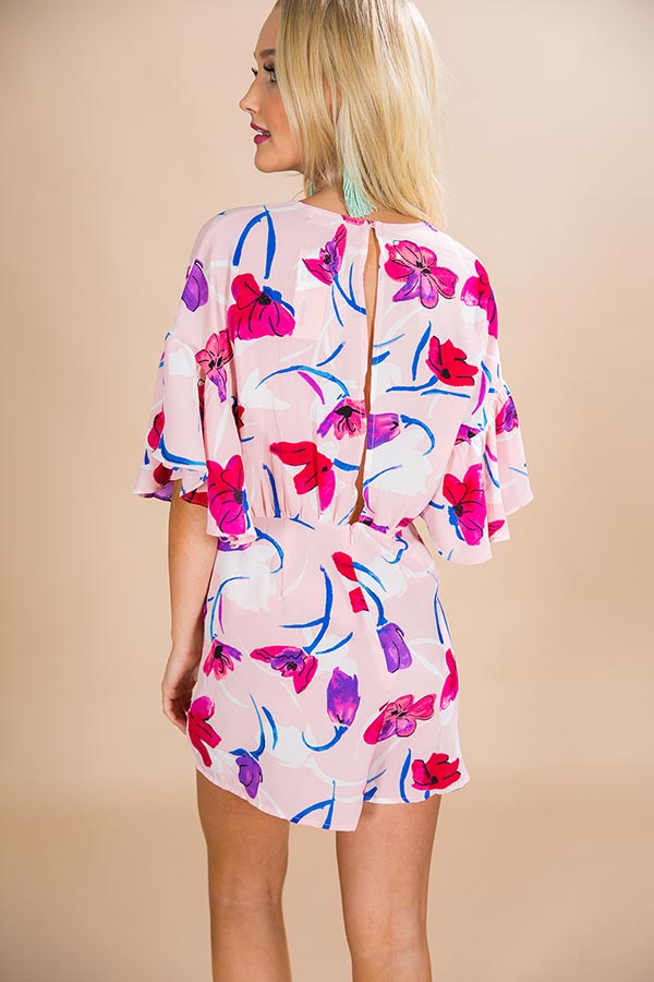 They will be tongue-tied at the sight of you wearing the "Catalina Crushing" floral print tie-front romper! This lightweight romper features flirty flounce sleeves, a tie-front bodice, split back and a breezy short.