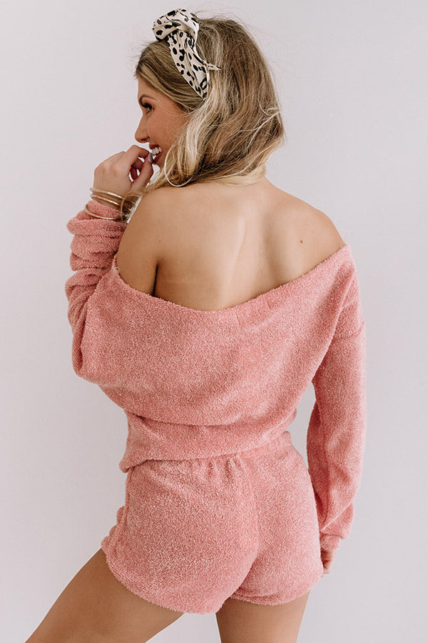 Relax in style this fall with our pink hued "Chills And Kisses Set" featuring an ultra soft lightweight top with loose knit material, a wide rounded neckline that can be worn off the shoulder, long oversized sleeves with fitted cuffs, a relaxed bodice that falls into an uneven hemline, and cozy shorts with an elastic waistband, tie belt, and upper thigh length hems! Just add an adorable leopard headband, black backpack, and "The Delaney Sneaker in Leopard" for an adorable lounge look or everyday outfit! Measurements