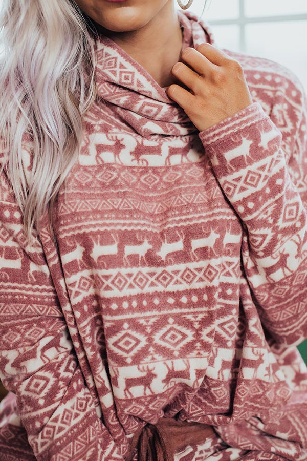 You won't find a more cozy or adorable piece to enjoy "cider and snuggles" in than this adorable red sweater featuring soft lightweight material patterned with white Christmas prints, a bunched turtle neckline, long loose sleeves, and a relaxed silhouette that falls into a straight tunic length hemline! All you have to do is pair it with some fuzzy slippers and our "Cider And Snuggles Joggers" for the ultimate two piece look! Measurements