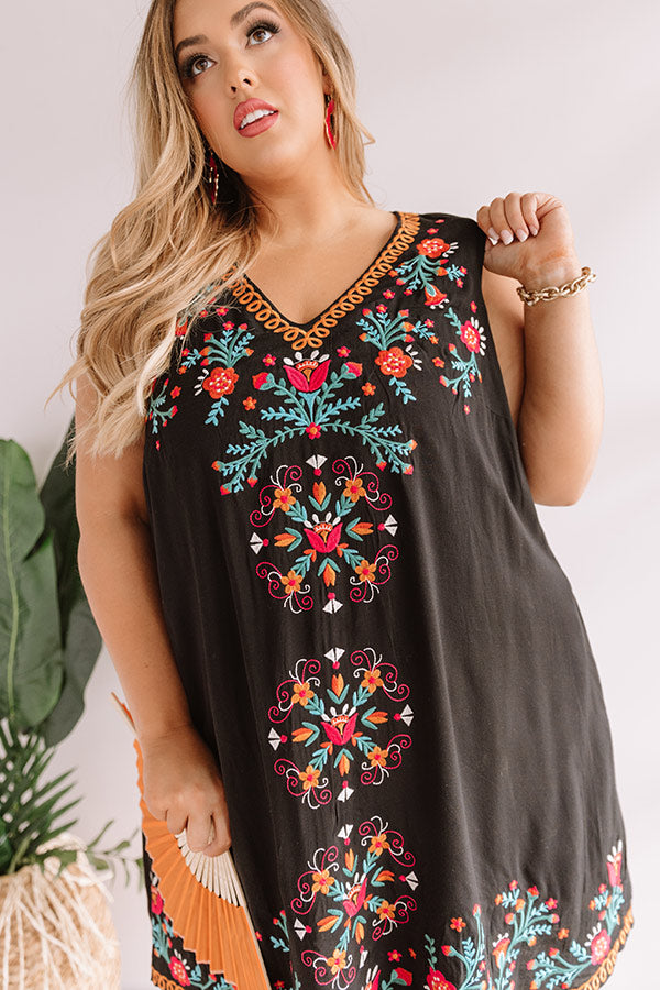 Cocktail Please Embroidered Shift Dress In Black Curves