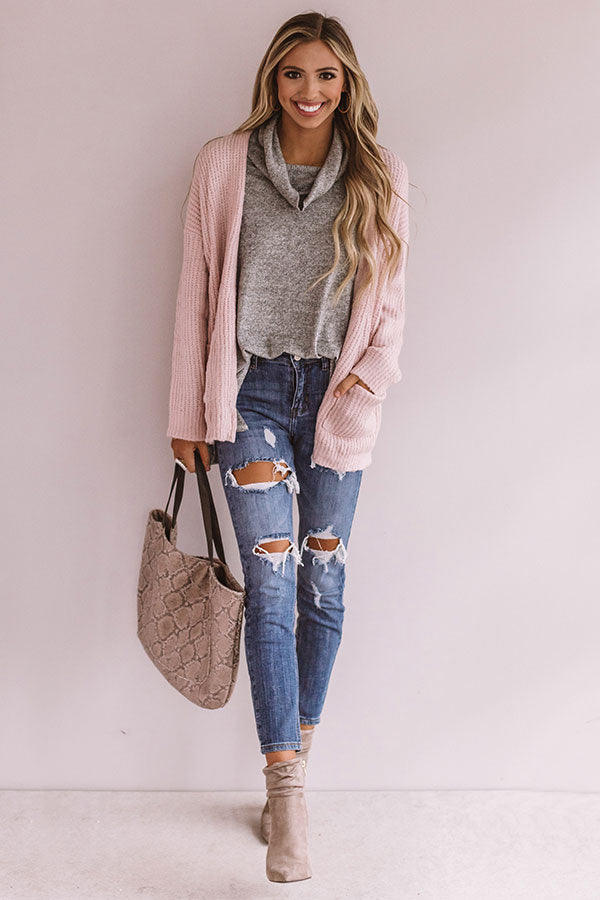 You will undoubtedly look "delightful" when you layer up with this pink cardigan featuring soft lightweight tight knit material with ribbed texturing, long loose sleeves with fitted cuffs, low accent side pockets, and a relaxed silhouette that falls into a straight mid-thigh length hemline! You can style this versatile piece with just about anything from a basic tank to a sweater, jeans to skirts or dresses, booties to wedges or sandals, clutches to totes, and hats to earrings! Measurements