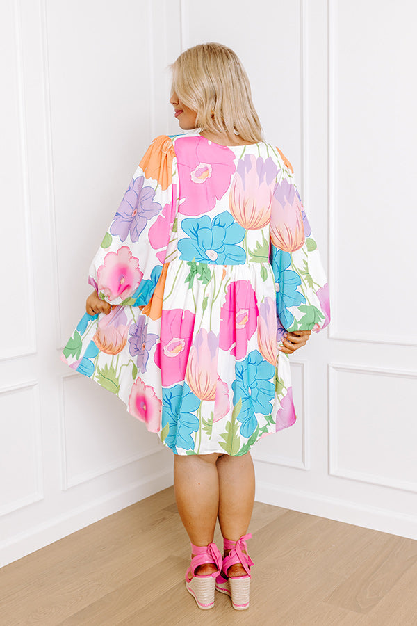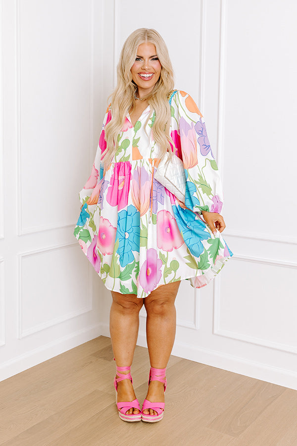 Floral Embrace Mini Dress in White Curves