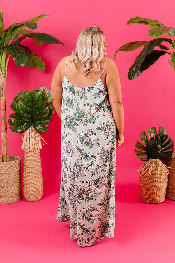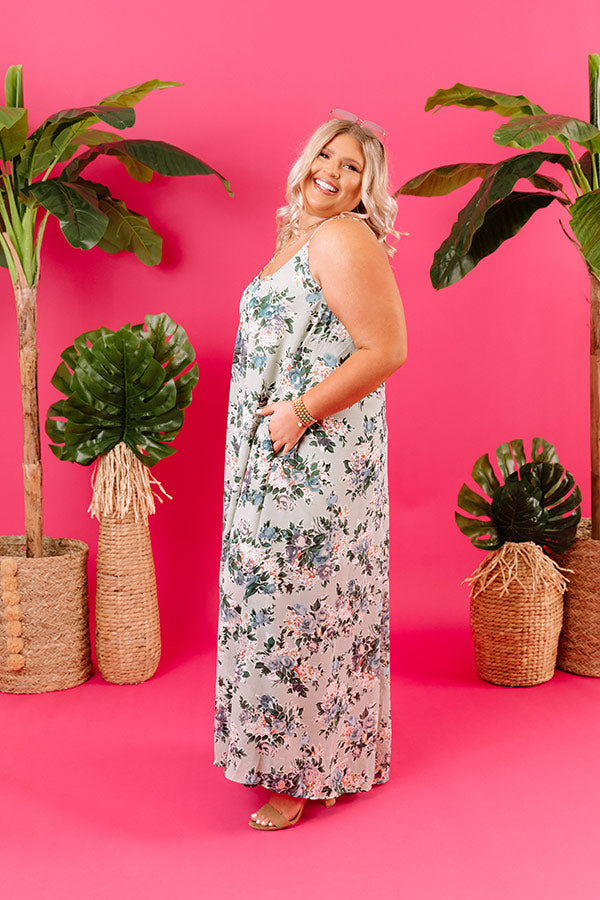 Plus Size - Dress to impress in our darling light sage colored 'Floral Ever After Maxi Dress' featuring lightweight and flowy material patterned with an intricate blue, purple, coral, and green hued floral print, a scooped neckline, adjustable spaghetti straps with a low back, hidden side pockets, and an ultra relaxed but flattering silhouette that cascades into a straight floor-length hemline!