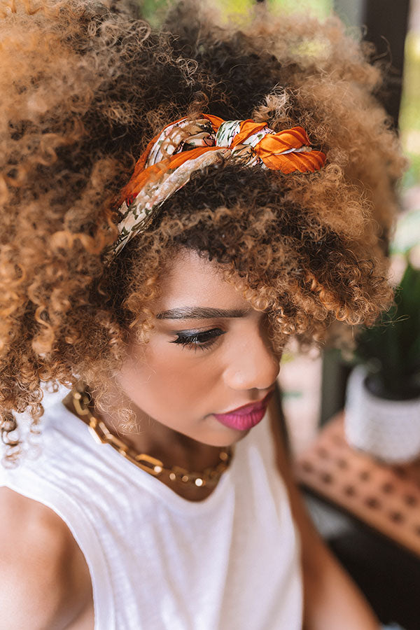 Messy hair, don't care!...Because this adorable scarf features sleek lightweight material patterned with a festive yellow floral print, perfect for achieving that "I didn't try too hard" look!