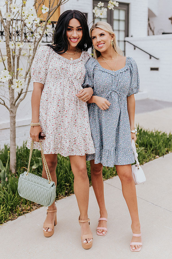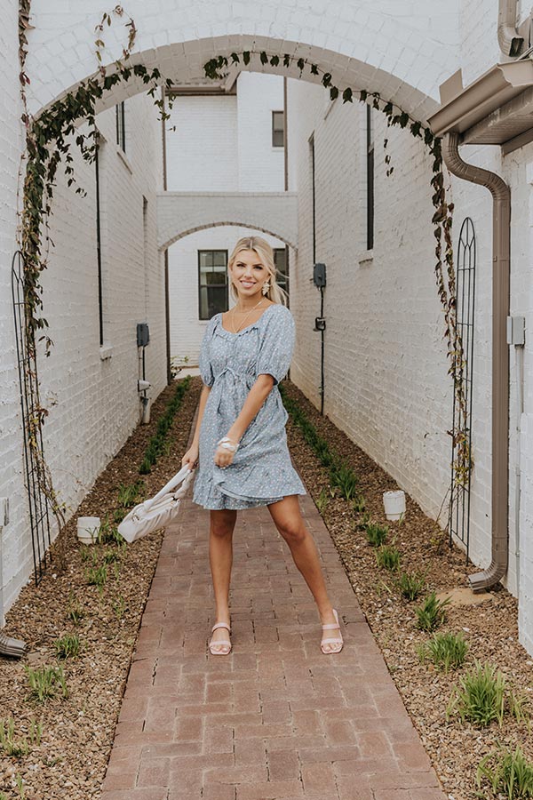 Spring into style with our charming airy blue 'Hydrangea Season Dress' featuring lightweight flowy material patterned with a small pink and cream hued floral print, a scooped v-cut neckline, bubble half sleeves, a tie closure waistline, and a relaxed skirt silhouette that falls into a wide ruffled mid-thigh length hemline!