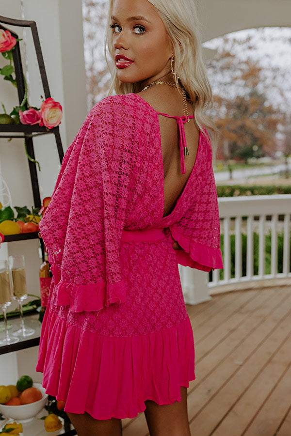 Island Beauty Lace Romper In Hot Pink