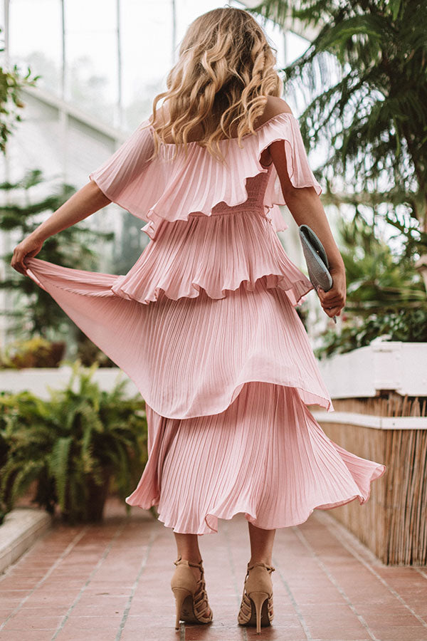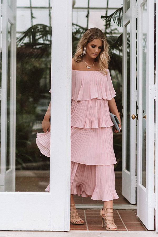 Whether you are riding a vespa through the streets or a gondola through the water, you still want to look jaw dropping while in Italy, and there is not a more impressive piece around than this blush midi! It has beautiful flowy and pleated layers and an off the shoulder fit! So as you travel through Venice or Florence be sure to take plenty of pics in this stunning dress! Measurements