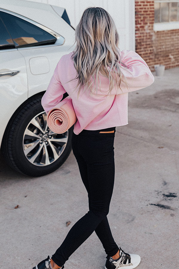 May your OOTD be comfy with our pink "J'adore 8 Crop Sweatshirt" featuring soft and warm lightweight material, a high rounded neckline, long loose sleeves with fitted cuffs, adorable lettering on the front, and a relaxed silhouette that falls into a straight hemline! You can wear this piece a variety of ways, like dressed down with some athleisure leggings and trendy sneakers, or styled up with some distressed light wash ankle skinnies, "The Emmaline Bootie in Black," a faux leather backpack, and our "All Caught Up Headband in Black!"