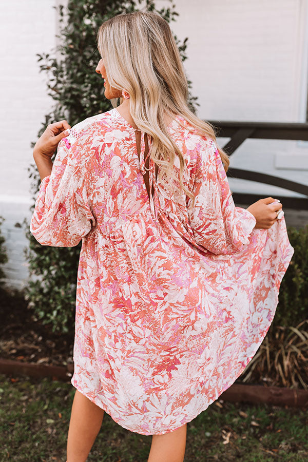 This adorable dress is so versatile you can wear it to Easter Sunday AND for jetting away to a Fiji vacay! It features lightweight breezy material patterned with a stunning pink hued floral print, a v-cut neckline and back with a tie closure, intricate crochet seam and trim detailing, bubble half sleeves with fitted elastic banded cuffs, and an ultra relaxed babydoll silhouette that falls into an uneven mid-thigh length hemline! We have styled this beauty with some pink wedges, matching statement earrings, and a quilted white crossbody, but you can also wear it with "The Carolina Heel in Gold" and our "Pretty And Poised Rhinestone Hair Clip Set in Pink!" Measurements