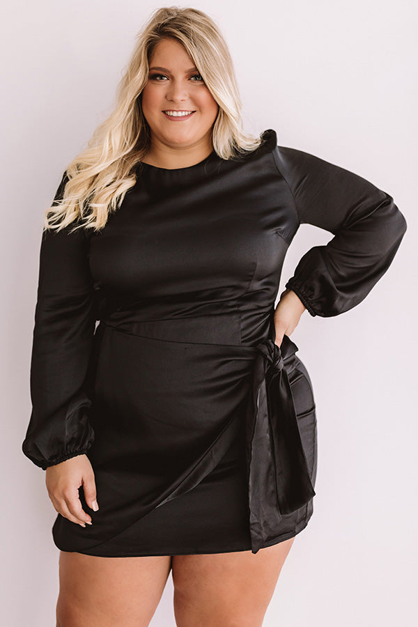 Plus Size - You will look like you live a "legendary lifestyle" when you strut around in this sleek little black dress featuring lightweight satin material, a high rounded neckline, long loose bishop sleeves with elastic banded cuffs, a wrapped tie closure accent, a zip up back, and a fitted silhouette that falls into a straight mid-thigh length hemline! We have styled this piece with a leopard heel and clutch, but you can also wear it with some colored accents like "The Pryor Faux Leather Peep Toe Bootie in Blush" and our "All Caught Up Headband in Blush!" Measurements