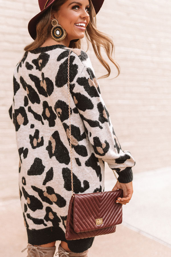 Let's Talk Leopard Sweater Dress In Brown