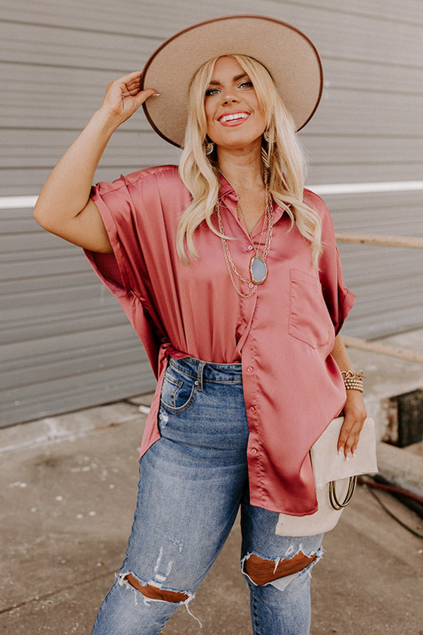 A wardrobe necessity, our charming blush colored plus size 'Lifelong Memories' top featuring sleek lightweight material, a button up front with a collared neckline, loose short sleeves, a single accent chest pocket, and a slouched silhouette that falls into a rounded hemline!