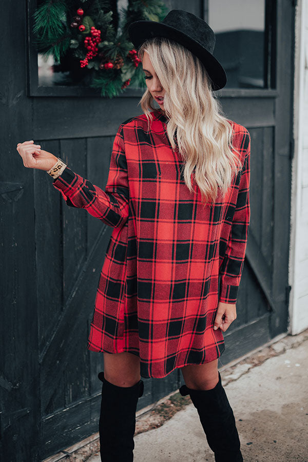 Mistletoe And Mimosas Buffalo Check Shift Dress