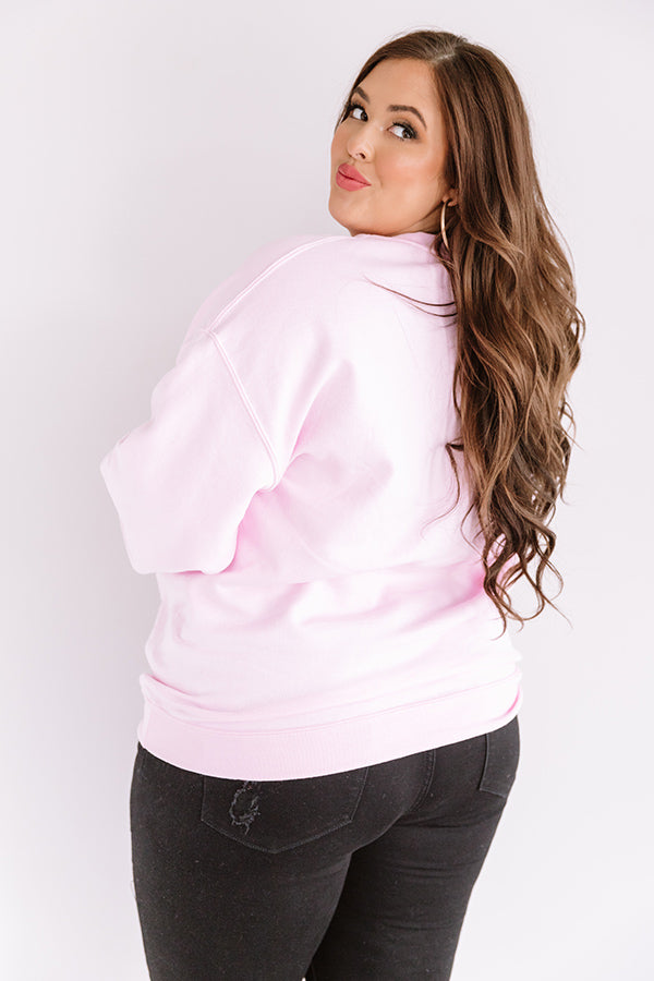 Plus Size - You won't find a more cozy piece to wear while chilling in quarantine than this adorable pink sweatshirt featuring soft lightweight material with black lettering on the front, a high rounded neckline, long loose sleeves with fitted cuffs, and a relaxed silhouette that falls into a straight hemline! We have styled this trendy piece with some distressed black leggings and cheetah print sneakers, but you can also wear it with some frayed ankle skinnies, "The Allen Wedge in Black," sunnies, and our "A Moment's Notice Crossbody in Black!" Measurements