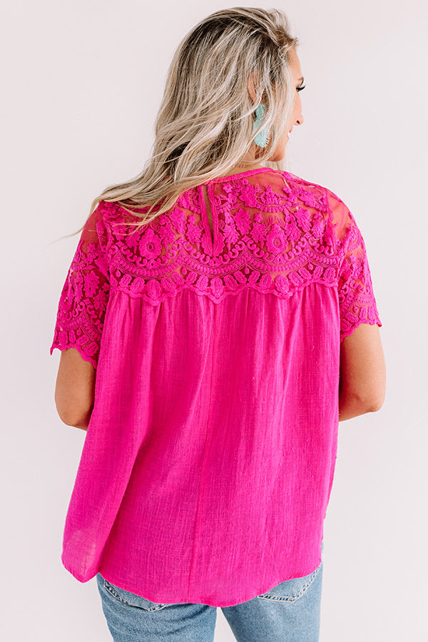 There is no better piece to enjoy "sangria in Santa Rosa" in than this adorable fuchsia colored shift top featuring lightweight breezy material, a high rounded neckline, intricately embroidery across the shoulders and on the short semi-sheer loose sleeves, a keyhole accented upper back with a button closure, and a relaxed silhouette that falls into a straight hemline! We have styled this cutie with some distressed denim, white platform heels, and a woven clutch, but you can also wear it with some frayed white shorts, "The Sydney Wedge in Gold," and our gold "Spread Your Wings Butterfly Hair Clip Set!" Measurements