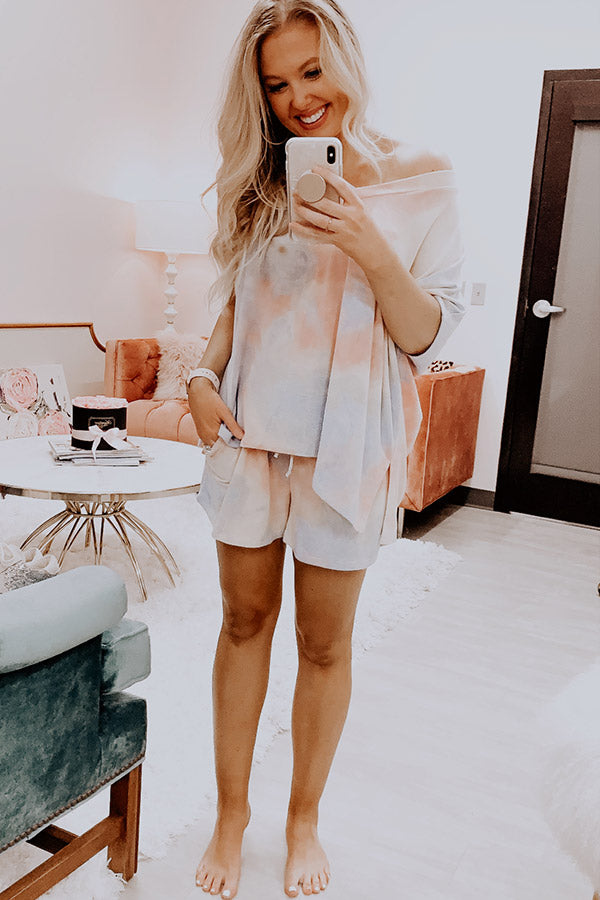 Nothing bring comfort to a gloomy day like a soft and comfy lounge piece like our adorable periwinkle colored "Seaside Twist" shift top featuring soft lightweight material patterned with blue, pink, and yellow tie dye, a v-cut neckline that can be worn off one shoulder, short loose sleeves, and an ultra relaxed silhouette that falls into a straight hemline! All you have to do is style it with our "Seaside Twist Tie Dye Joggers or Shorts" and add some fuzzy slippers for the ultimate cozy two piece look!