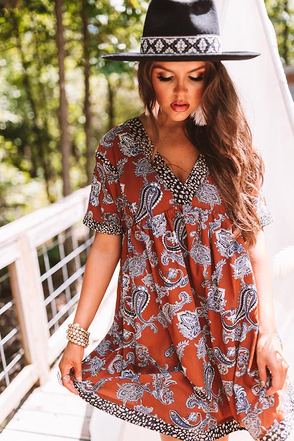 Serene Stay Paisley Babydoll Dress In Cinnamon