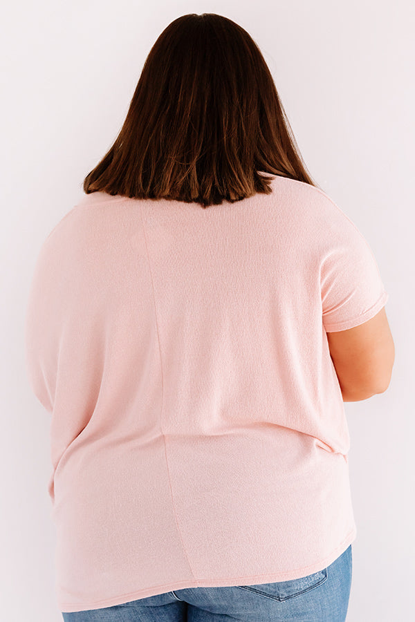 Plus Size - Live simply in our causal rose quartz colored "Sing Along Shift Top" featuring soft ultra lightweight material, a v-cut neckline that can be worn off one shoulder, short loose sleeves, and a relaxed silhouette that falls into a straight cropped front hemline and a longer back hem with side slits! We have styled this upscale basic with some distressed ankle skinnies, a statement headband, and a neutral wedge and faux leather tote, but you can also wear it with some frayed white shorts and the "Steve Madden Dual Rhinestone Sandal!" Measurements
