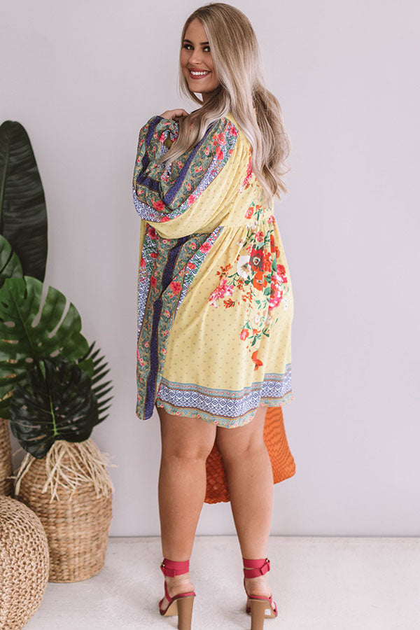 Sips And Sights Floral Babydoll Dress In Yellow Curves