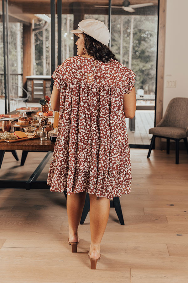 Believe us when we say you'll be thankful you added this darling plus size rust colored shift dress to your cart with its lightweight flowy material, white floral print, a rounded neckline, ruffled cap sleeves, a keyhole accented upper back with a button closure, and a relaxed tiered silhouette that falls into an uneven mid-thigh length hemline!