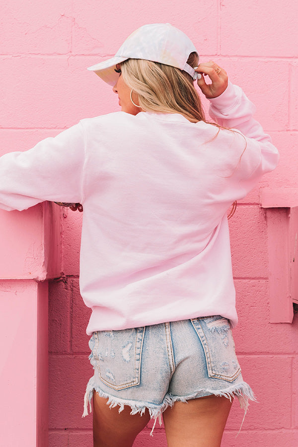 You will without a doubt be "the cool mom" when you wear this cute pink sweatshirt featuring soft lightweight material with large white block lettering on the front, a high rounded neckline, long loose sleeves with fitted cuffs, and a relaxed silhouette that falls into a straight hemline! You can style this trendy piece with some distressed denim shorts and a neutral hued sneaker and baseball cap, but you can also wear it with some frayed black skinnies or joggers, "The Lela Espadrille in White," and our "Style Above The Rest Faux Leather Bucket Bag in White!" Measurements