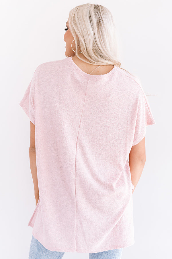 Dance to the tune of your own "theme song" in this casual cute pink shift tee featuring soft lightweight material, a wide rounded neckline, short loose sleeves, and an ultra relaxed silhouette that falls into a high/low tunic length hemline with accent side slits! This versatile piece can be styled a variety of ways, like with some distressed light wash skinnies and a neutral wedge and tote, or it can be worn front tucked into some white shorts with our "Dreams Of Tomorrow Wool Hat in Beige," and "The Ellie Snake Print Sneaker in Ivory!" Measurements