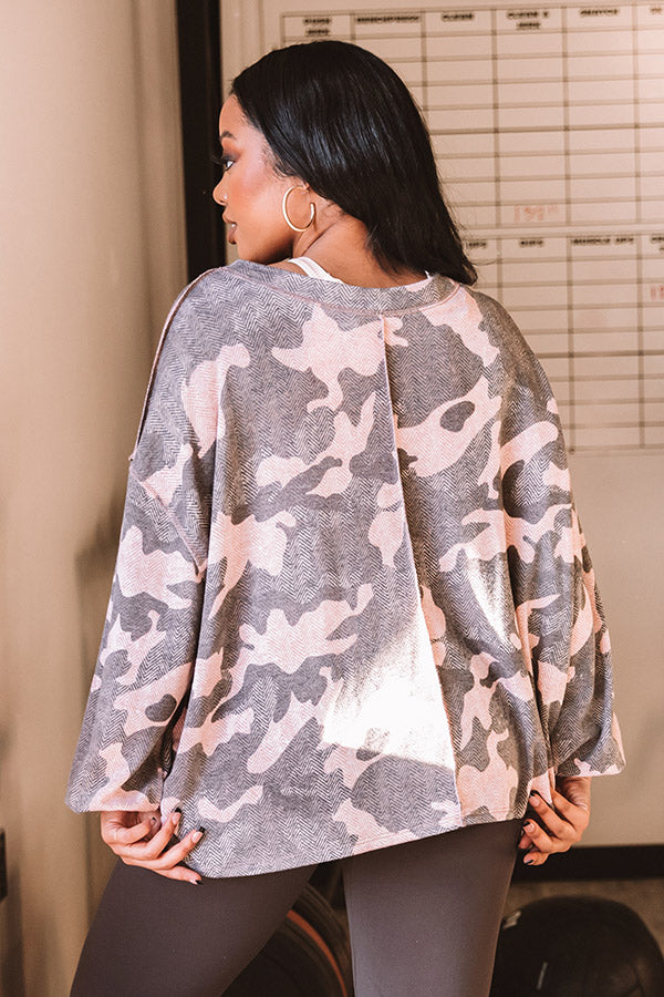 Your hunt for the perfect trendy layering piece is over! Our 'Trailside Coffee' shift top features soft lightweight tight knit material patterned with a green and neutral hued camo print, long oversized sleeves with fitted cuffs, a wide v-cut neckline that can be worn off one shoulder, and a slouched silhouette that falls into a straight hemline!