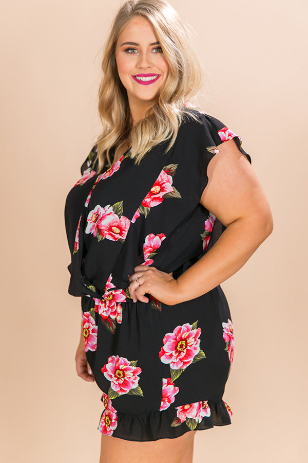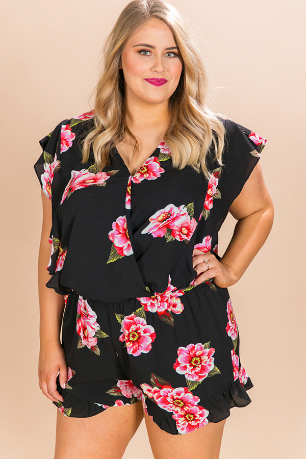 Work the BLOOM in the fabulous floral romper! This blooming beauty has a crossover surplice bodice (with hook closure), flirty flutter sleeves, a flattering elastic banded waistline & a breezy ruffled short. Style with a statement earring & a strappy heel for a sweet Summer look that's just flourishing with style!