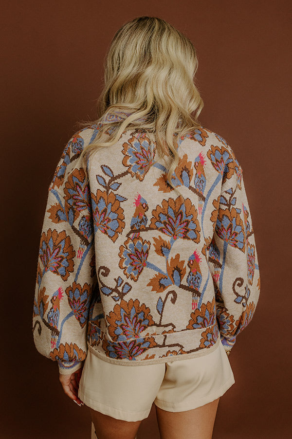 Petals And Pinot Floral Knit Cardigan in Beige