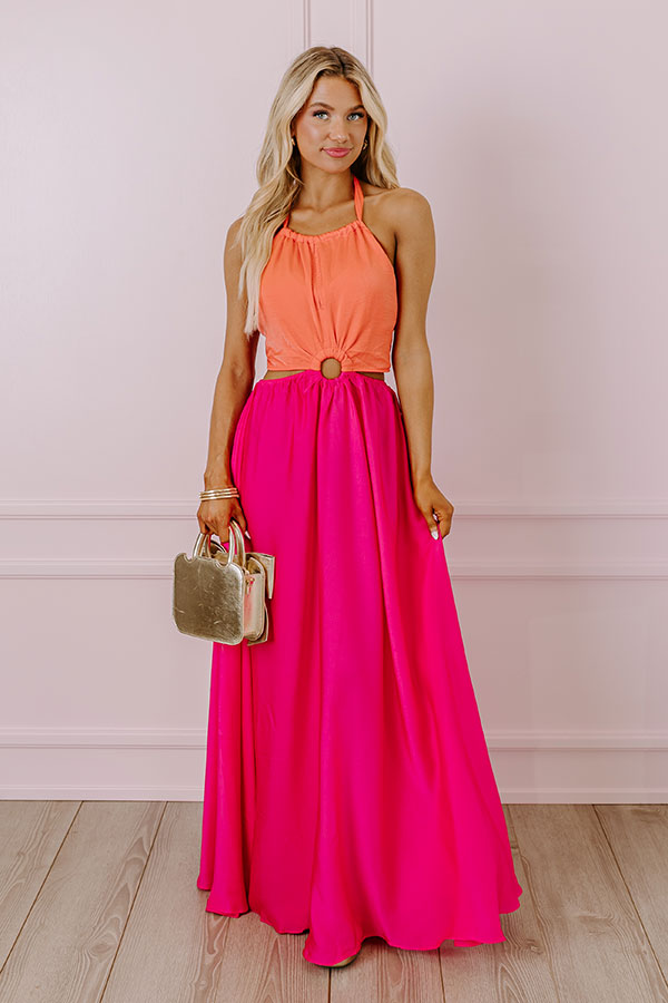 - A figure flattering silhouette that ends in a rounded floor length hemline