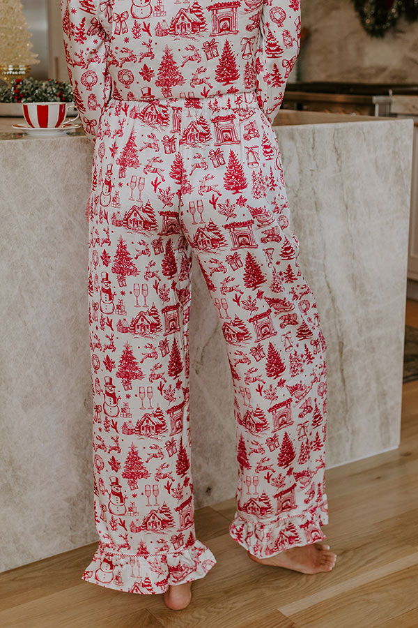 - Get into the Christmas spirit with these darling satin pajama pants! Perfect for cozy holiday nights, its festive design makes it a must-have for your seasonal sleepwear collection.