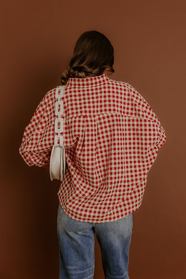 Picnic At The Park Oversized Gingham Button Up in Red/Yellow