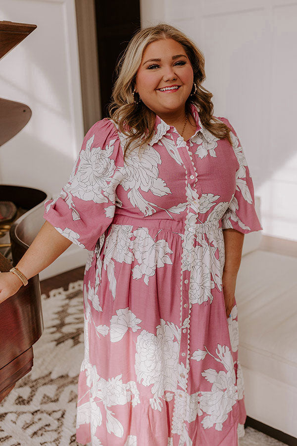 Bistro Bound Floral Midi Dress in Blush Curves