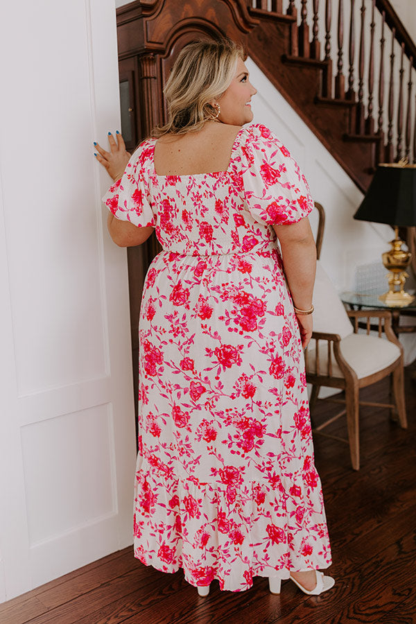 Sweet Surprise Floral Maxi Dress in Hot Pink Curves