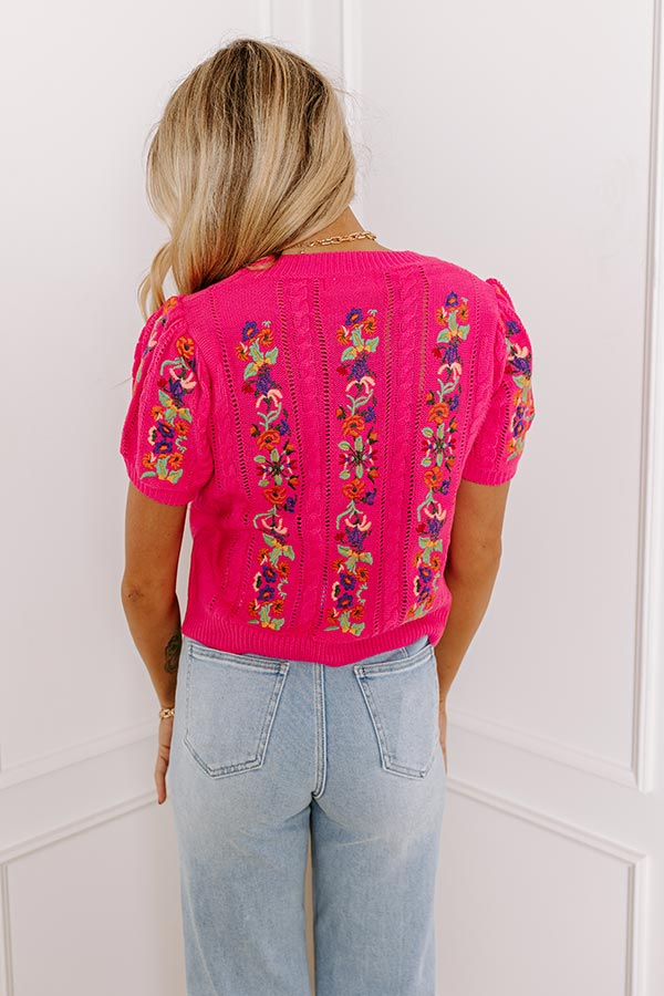 Wildflower Fields Embroidered Sweater Top in Pink