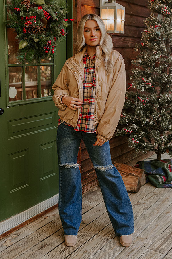 Feeling Spontaneous Faux Leather Jacket In Khaki